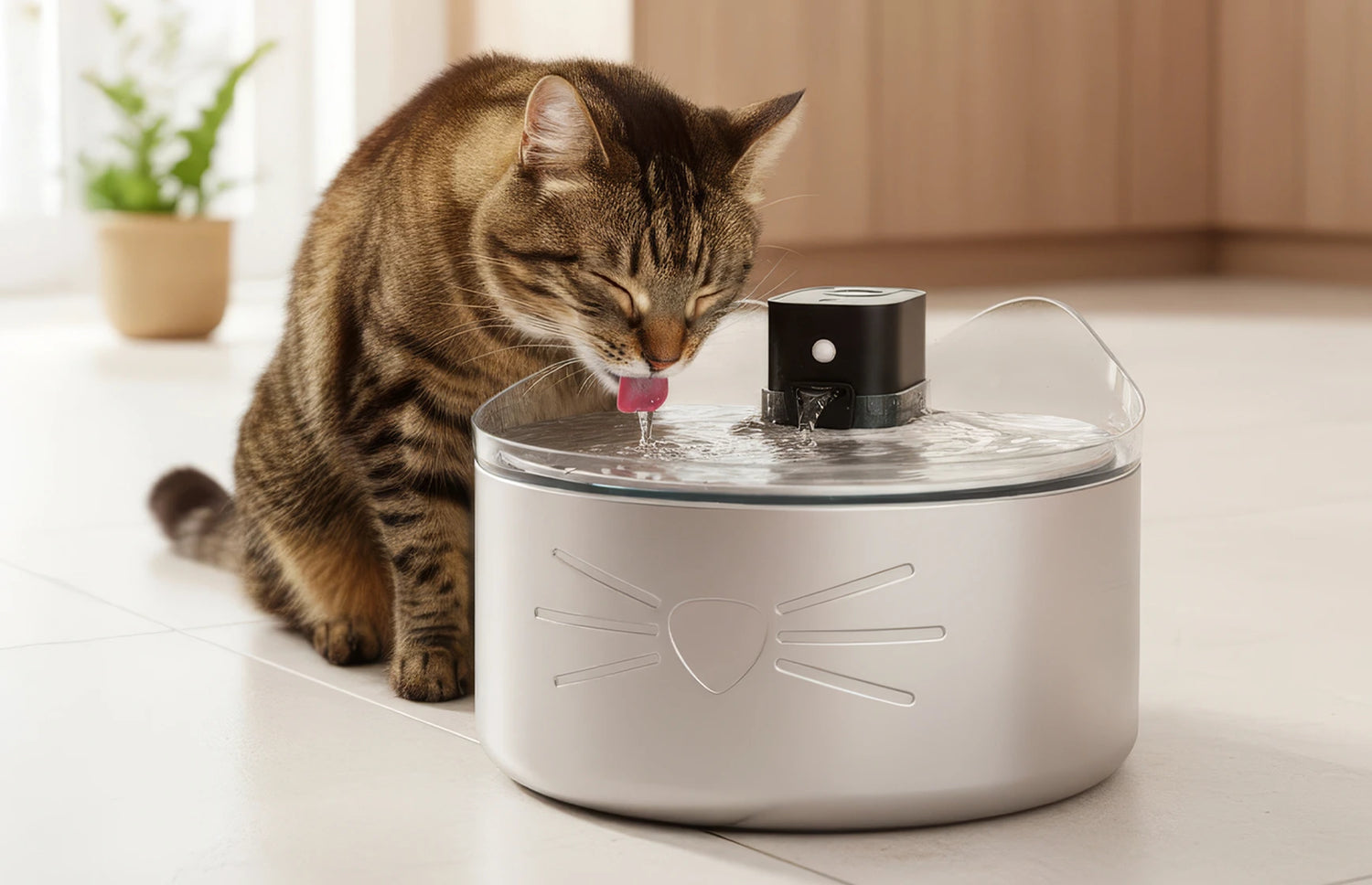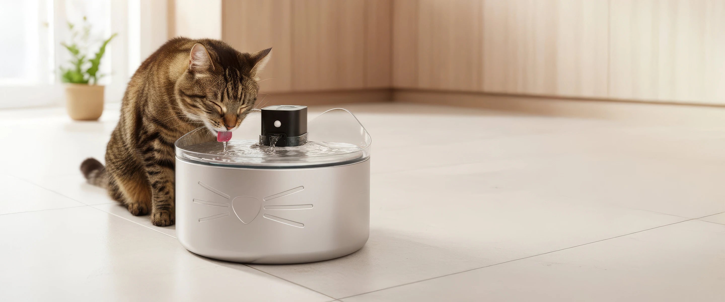 En la Fuente Sin Cables PIXI de Acero Inoxidable con UVC. Ideal para casas con una o más mascotas.