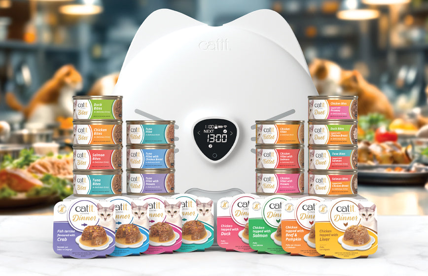 Programa las raciones de la comida húmeda más variada ahora ¡con descuento! Compra 30 latitas Cuisine y consigue el Comedero Inteligente PIXI de 6 Raciones por solo 99€.
