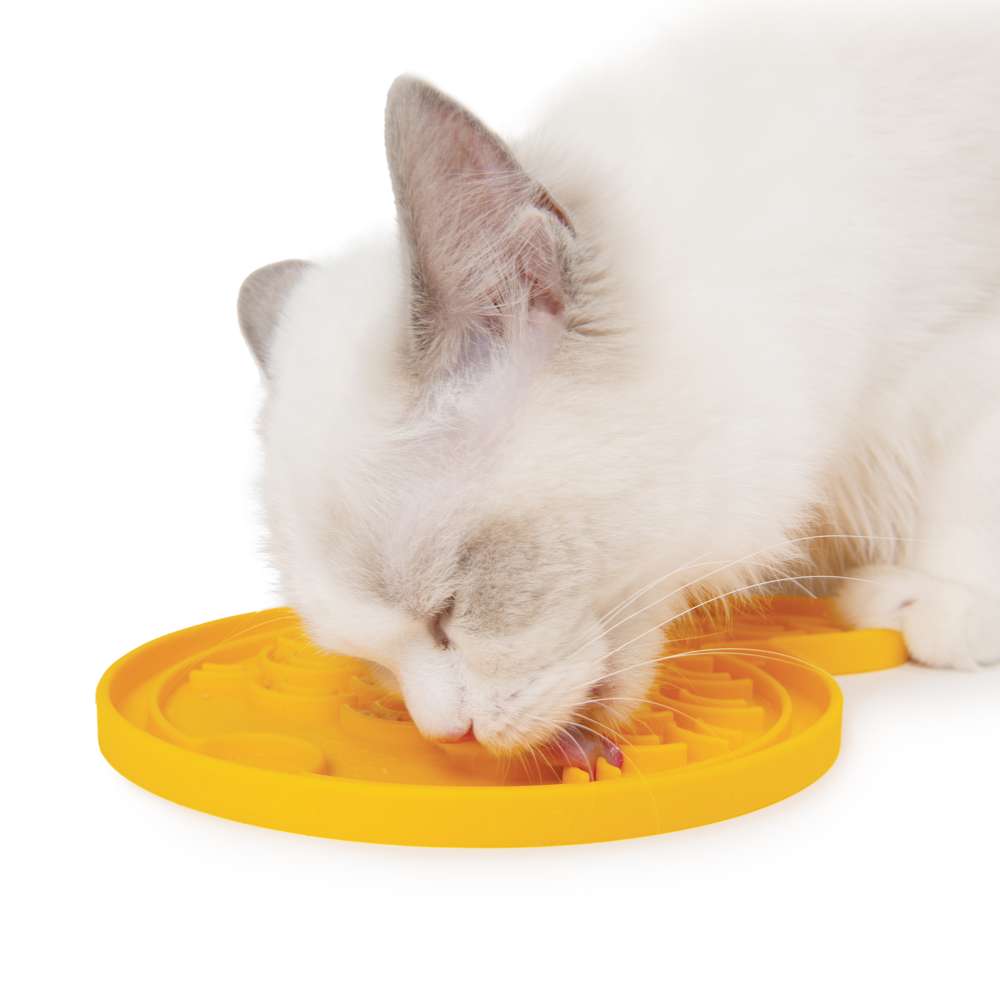 Disfruta del Creamy durante más tiempo. Catit Creamy es un snack tan saludable y bajo en calorías que los gatos pueden comerse uno varias veces al día. Si deseas que tu gato saboree esta delicia cremosa durante más tiempo, vierte un poco en este mantel de silicona acanalada y observa cómo lo hace.