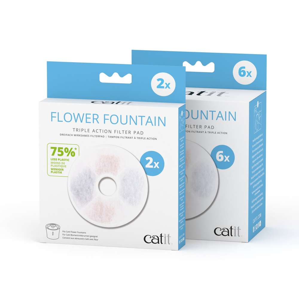 Eficaz filtro de agua de triple acción para las fuentes Catit Flower Fountain.