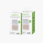 La almohadilla reductora de olores de doble acción Catit Airsift es nuestro filtro de mayor rendimiento, ya que combina dos materiales que atrapan olores y son seguros para los gatos: nuestro potente eliminador de amoniaco Magic Blue, ideal para el olor a pipi, y el carbón activado para mantener a raya los malos olores de las heces.