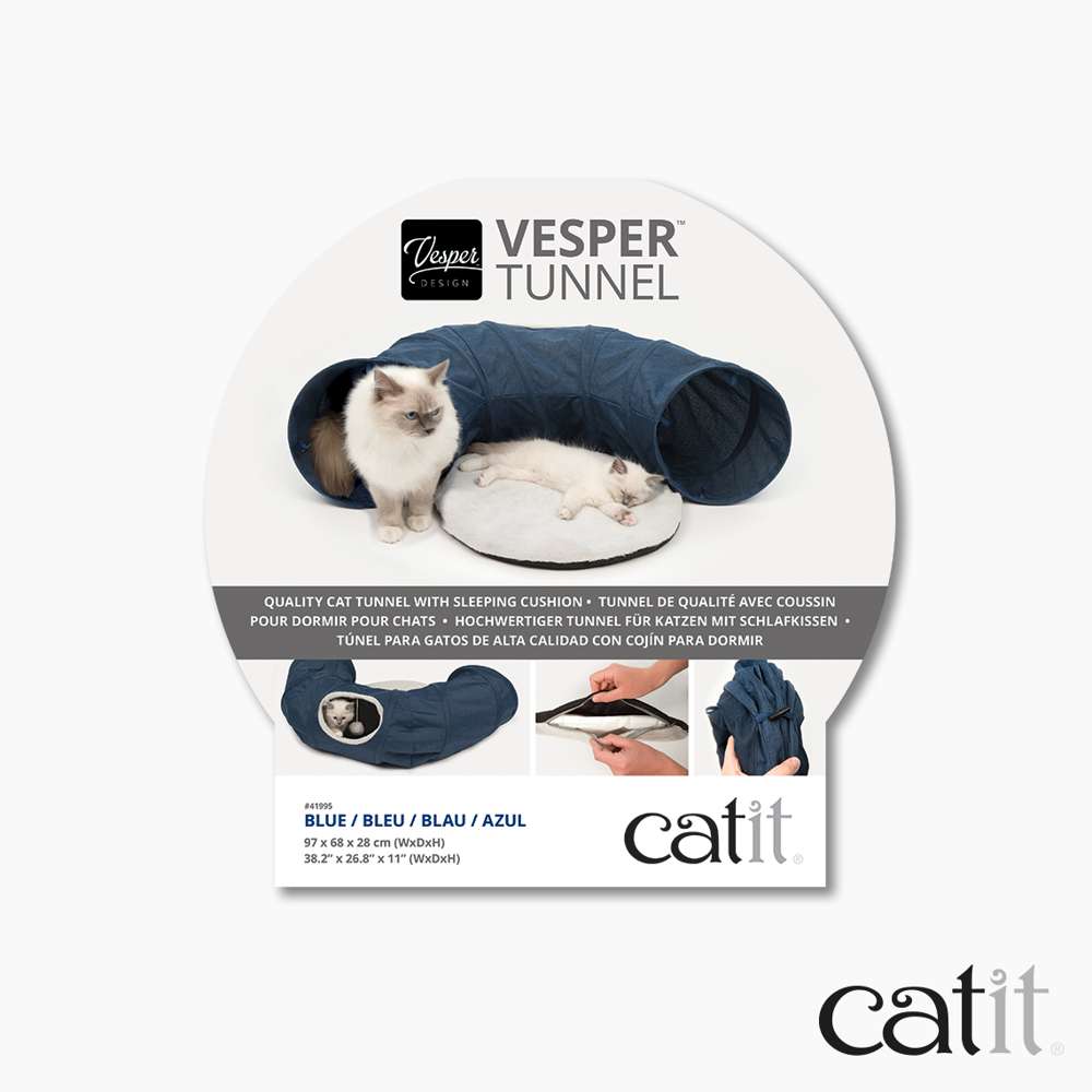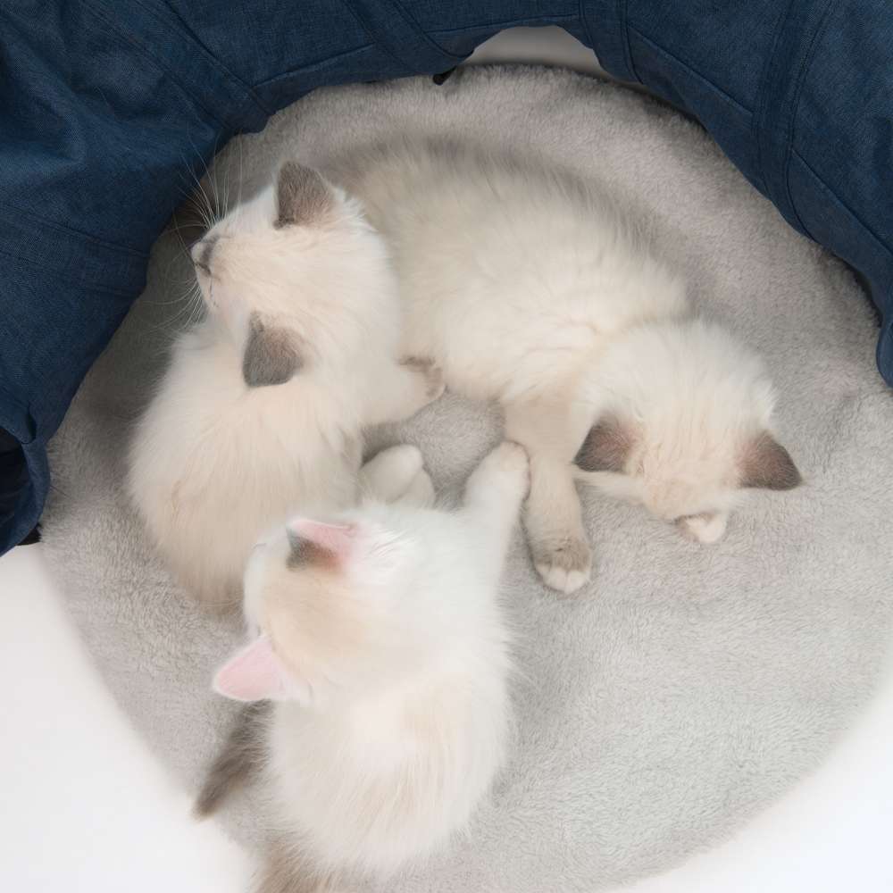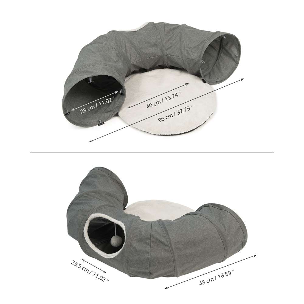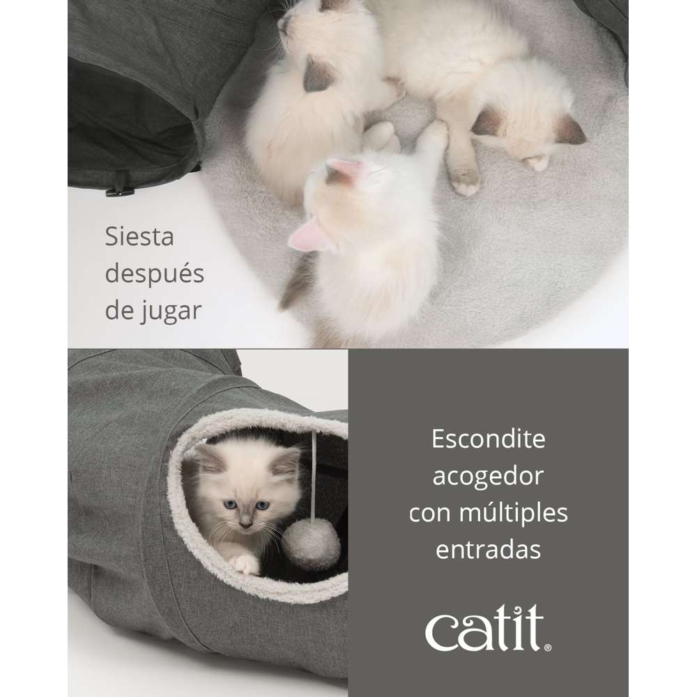 Túnel de calidad para gatos con cojín para dormir.