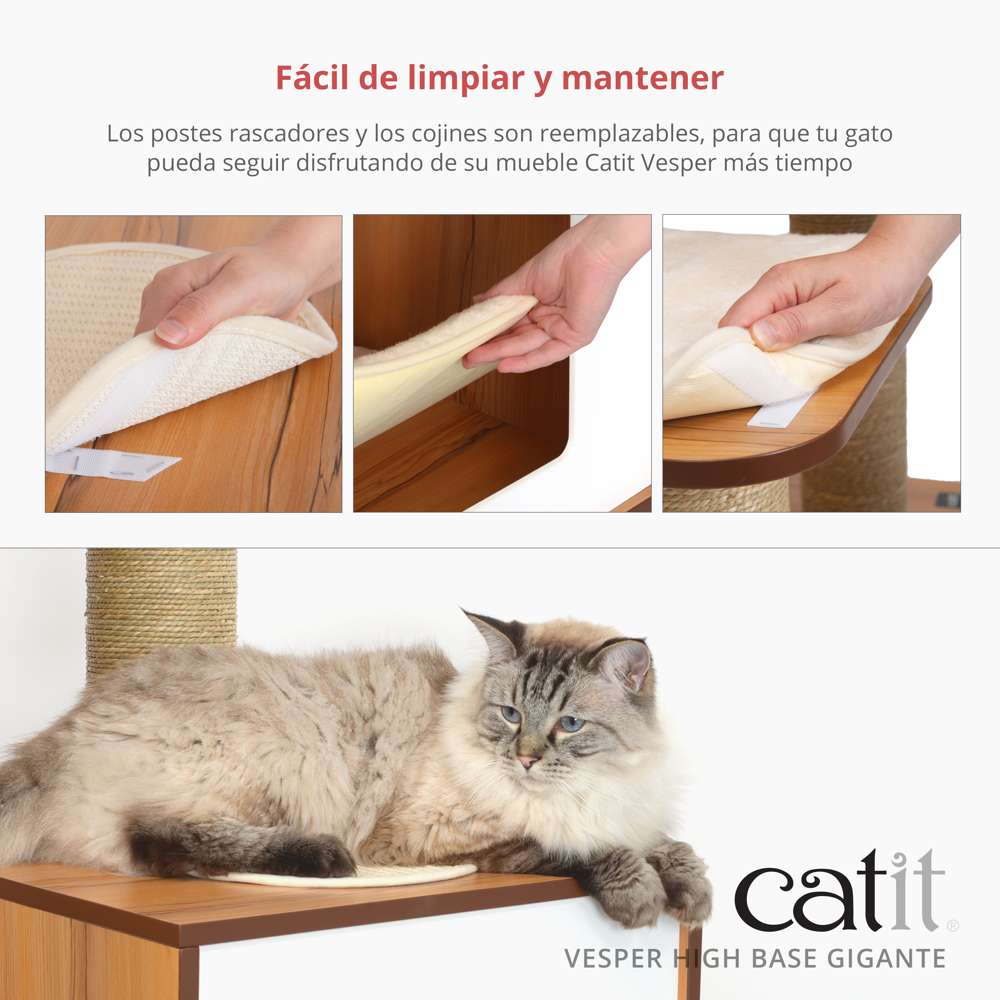 El Vesper High Base Gigante está diseñado para ser más espacioso y resistente. Es el árbol para gatos perfecto para acomodar gatos grandes o varios gatos a la vez.