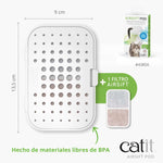 El soporte Catit Airsift Pod reutilizable encaja perfectamente con el Filtro Catit Airsift, diseñado para funcionar con cualquier arenero cubierto
