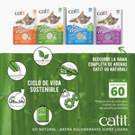 Catit Go Natural es una nueva gama de arenas para gatos ecológicas hechas a base de recursos sostenibles. A diferencia de muchas arenas para gatos minerales ¡las vegetales son una opción más segura para los gatos y respetuosa con el planeta! ¡Al fin, tu gato puede “hacer sus cosas” como lo haría en la naturaleza!