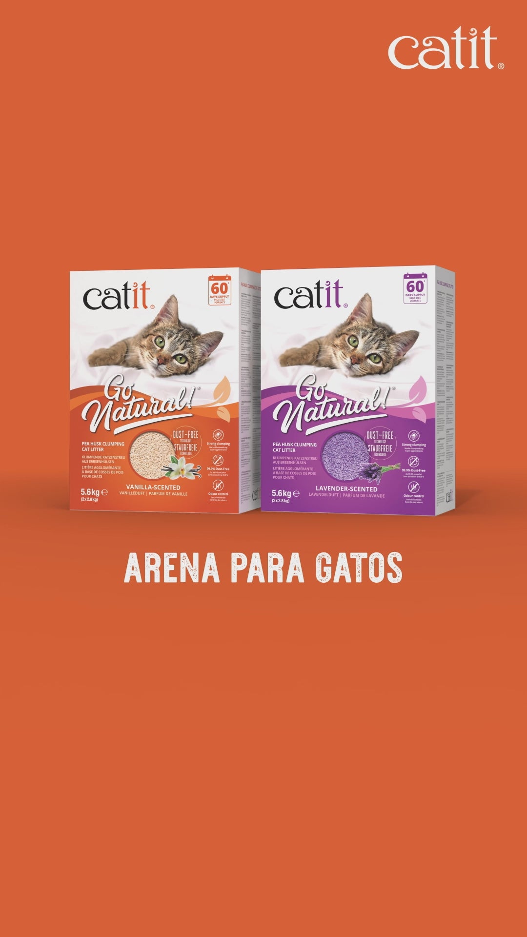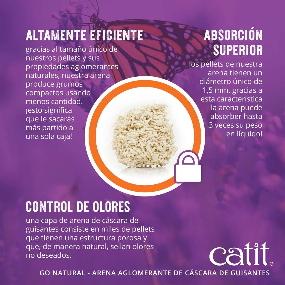 Catit Go Natural es una nueva gama de arenas para gatos ecológicas hechas a base de recursos sostenibles. A diferencia de muchas arenas para gatos minerales ¡las vegetales son una opción más segura para los gatos y respetuosa con el planeta! ¡Al fin, tu gato puede “hacer sus cosas” como lo haría en la naturaleza!
